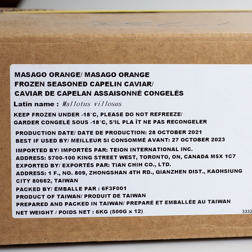 Ingredients: Capelin Roe, Sugar, Salt, Fructose, Allura Red...