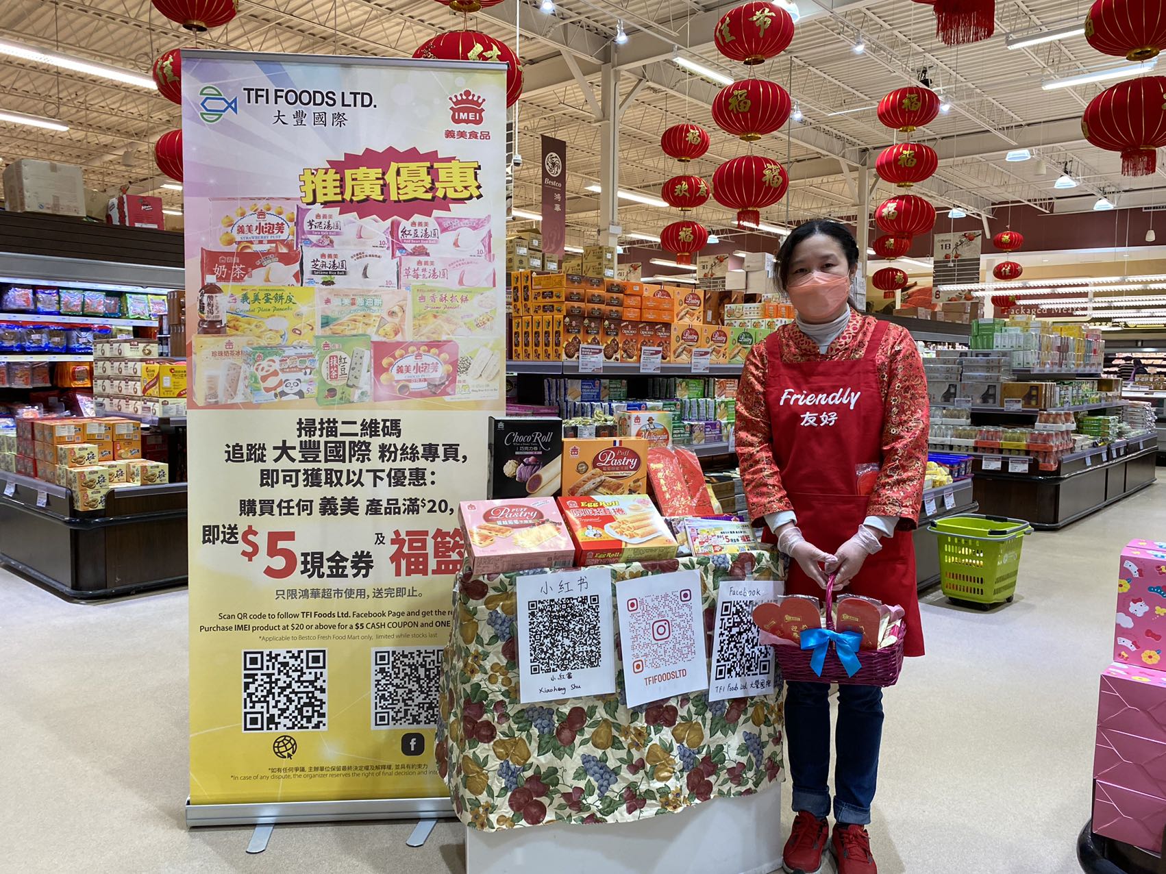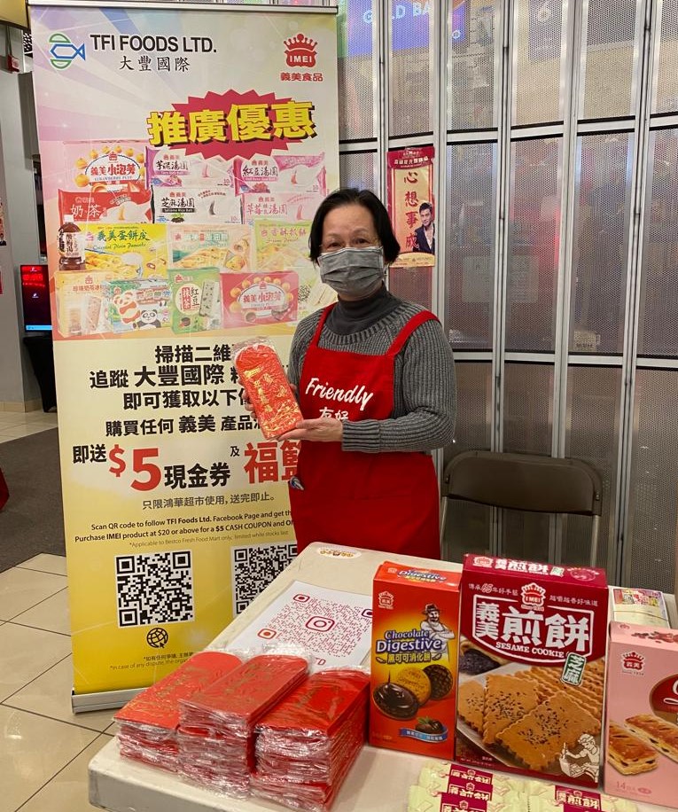 Meanwhile, an interactive game segment of A1 Chinese Radio CNY event at Chartwell Shopping Mall on 28 Jan, 2023 was sponsored by TFI Foods x IMEI (義美), offered valuable prizes to the winners and participants to share the happiness with Canadians. During the event, there was a demo booth at Bestco Fresh Food Mart nearby to offer free tasting and promote IMEI products.